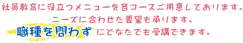 ・6つのコース(E~J)の中からお選びいただけます。(時間・内容 ご要望に調整可)