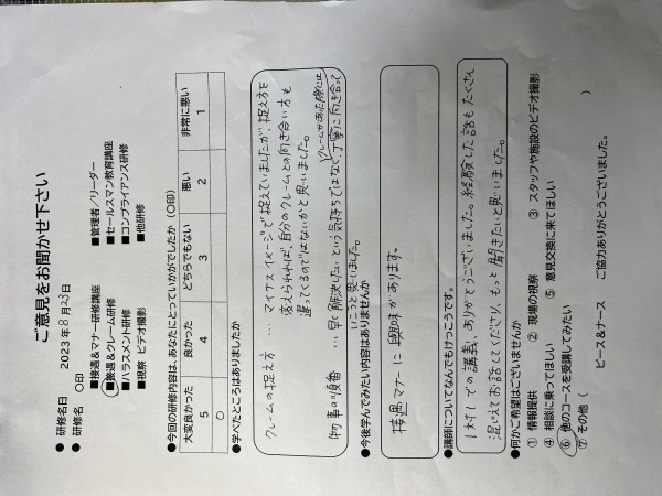 急遽、クレーム研修を受講したいと幼稚園の先生